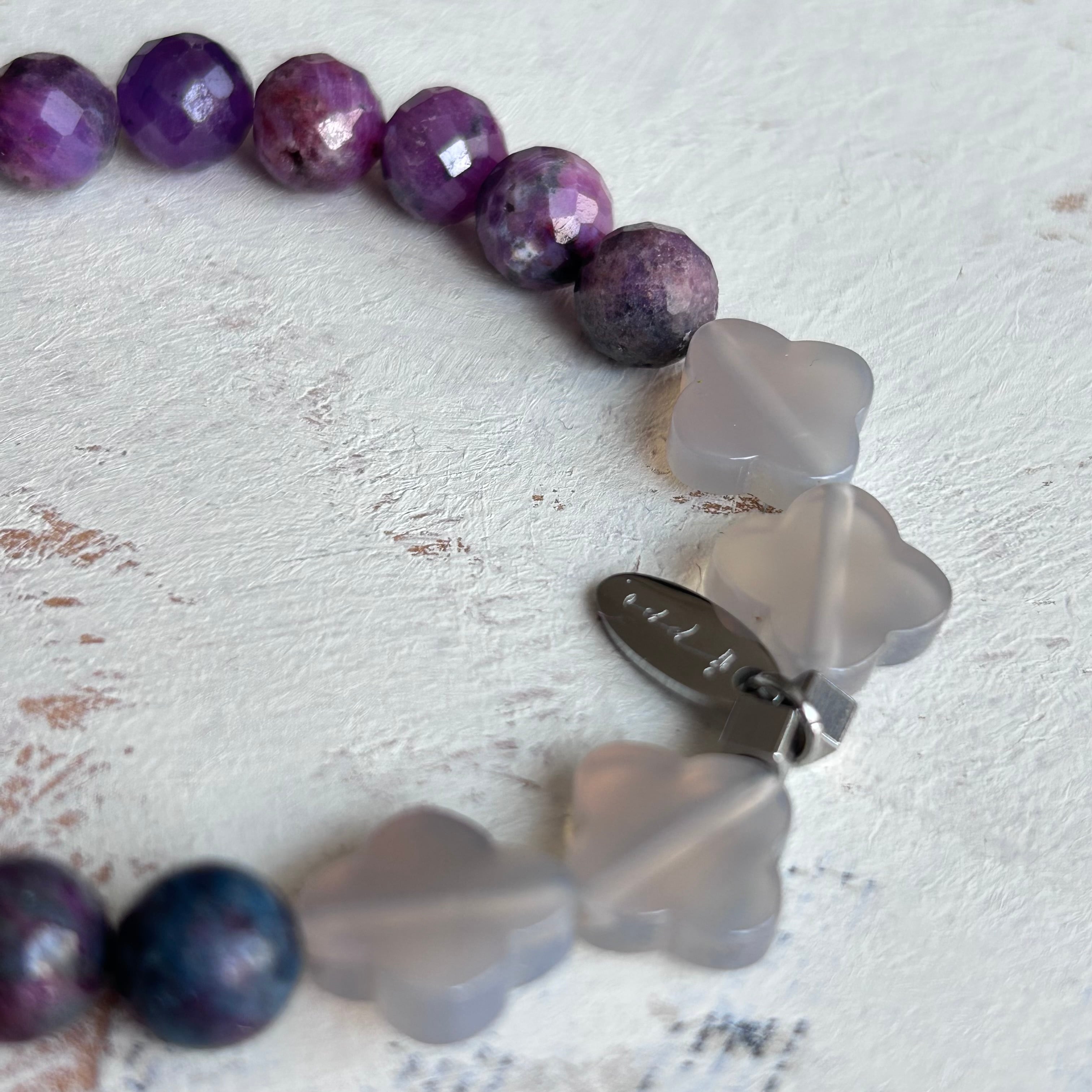 ルビーの「情熱・行動力・勝利」とカイヤナイトの「冷静・洞察力・癒し」の力を併せ持ち、持ち主の「情熱と冷静のバランス」「目標達成のサポート」「自信とカリスマ性の向上」に効果があるとされます。ビジネスの成功、恋愛の成就、そして心の安定やトラウマの解消に導くパワーストーンです。