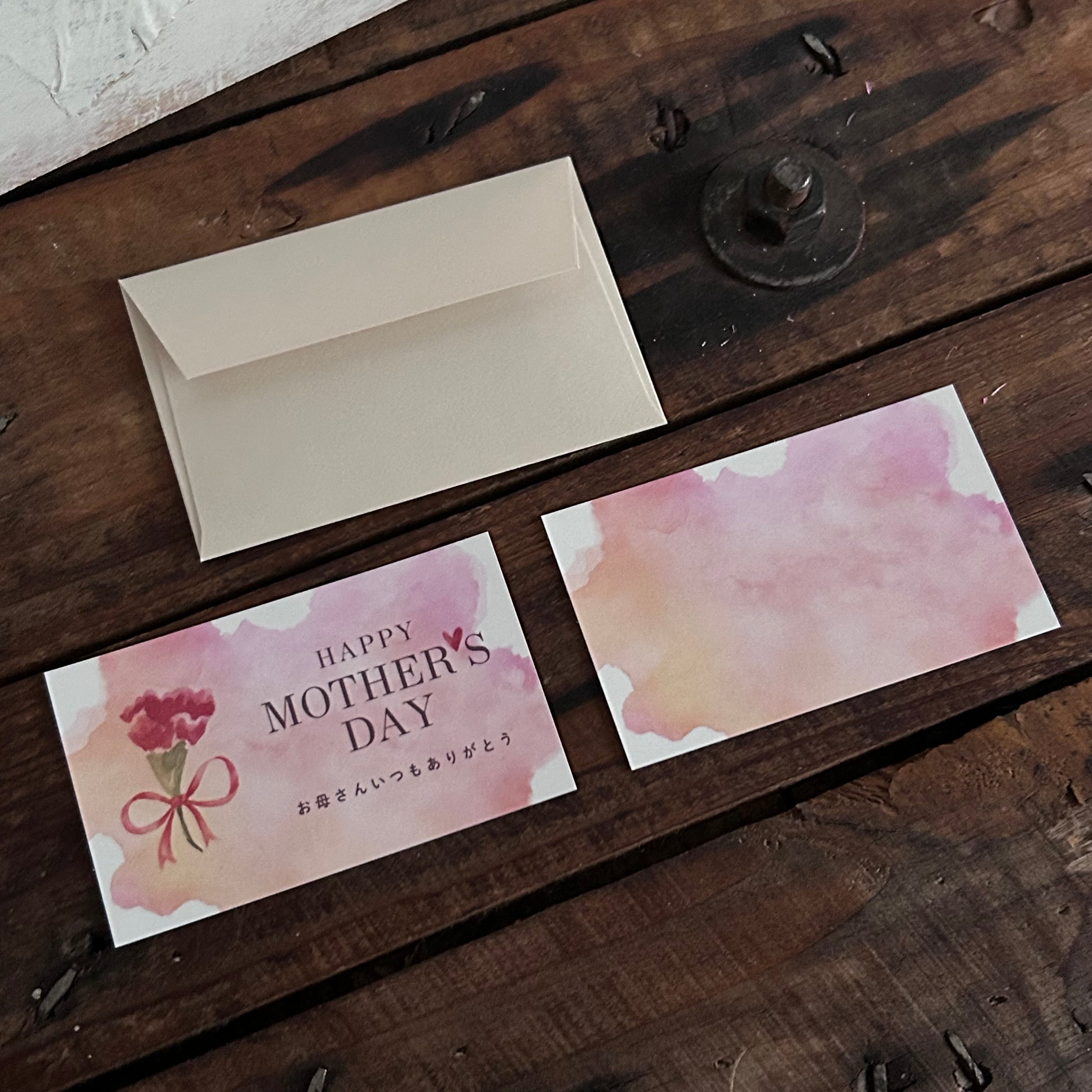 母の日のメッセージカード、何も書いていないメッセージカード、メッセージカードが入る封筒となります。