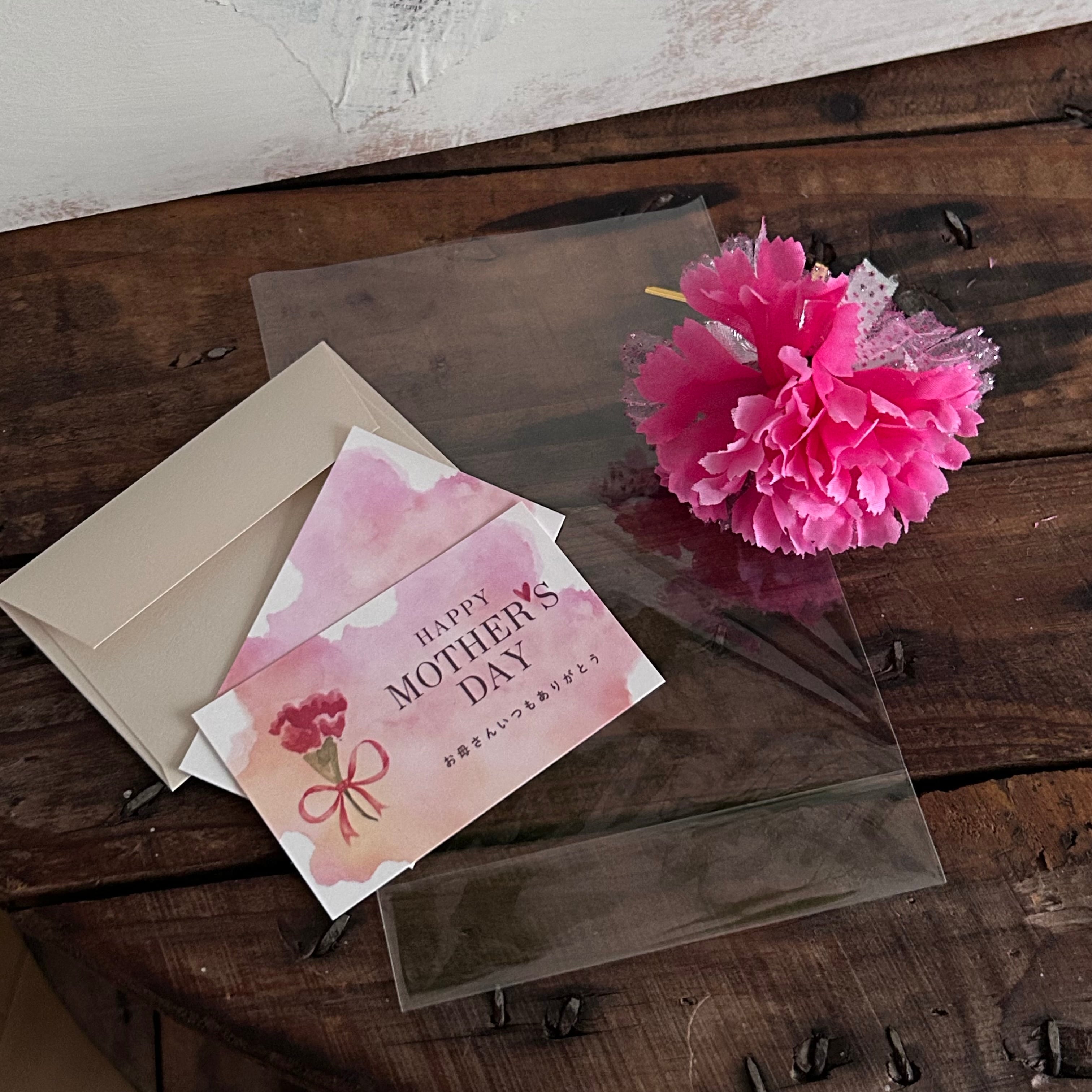 母の日のメッセージカードと何も書いていないカードもおつけします。